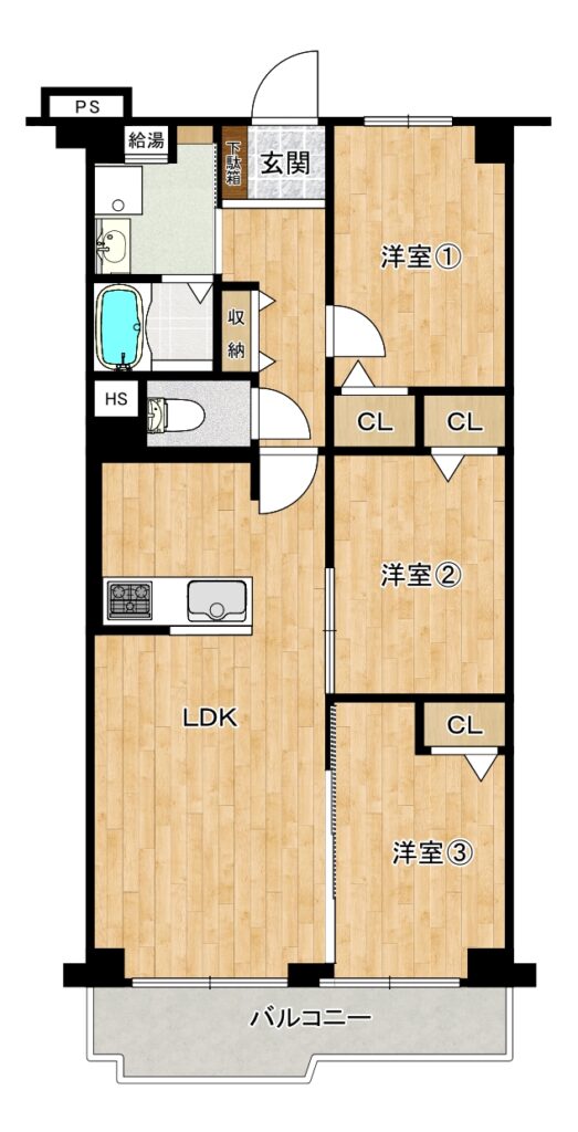 「シンプル」を極めた区分所有マンションの一室です。間取りはファミリー世帯向けの3LDKであり、幅広いファミリー層のお客様からも気に入っていただくことを重視した【リノベーション】を行いました。希少なペット飼育も可能な区分所有マンションとなっております。