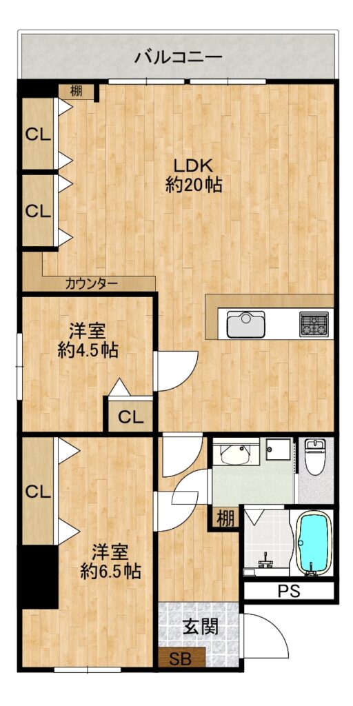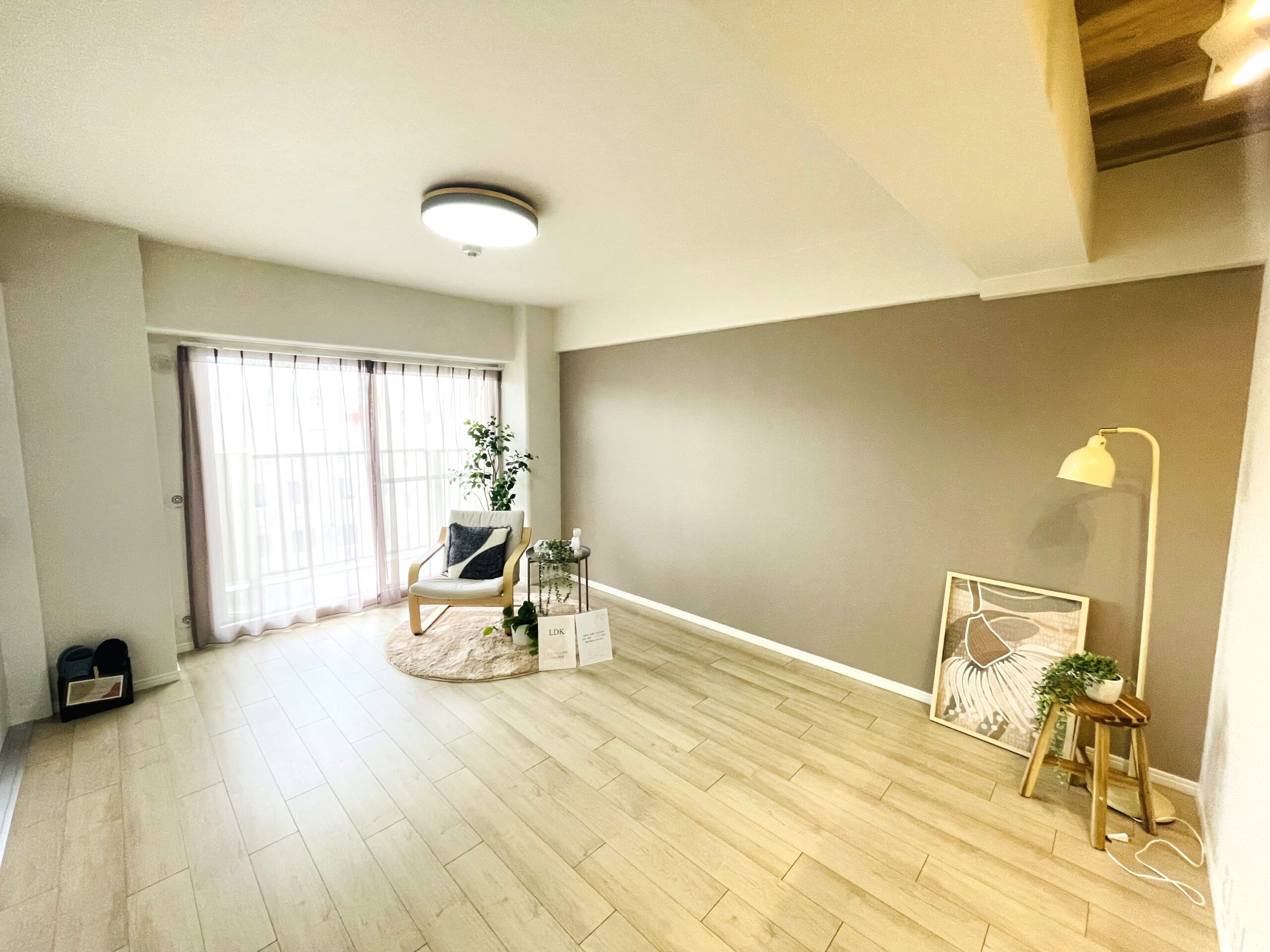 室内は全面リノベーションを行い、LDKは約20帖あり、キッチンをカウンターキッチンにすることでリビングでの住み心地を重視した間取りとなっております。自宅でのくつろぎや居心地の良さを感じられる物件となっております。